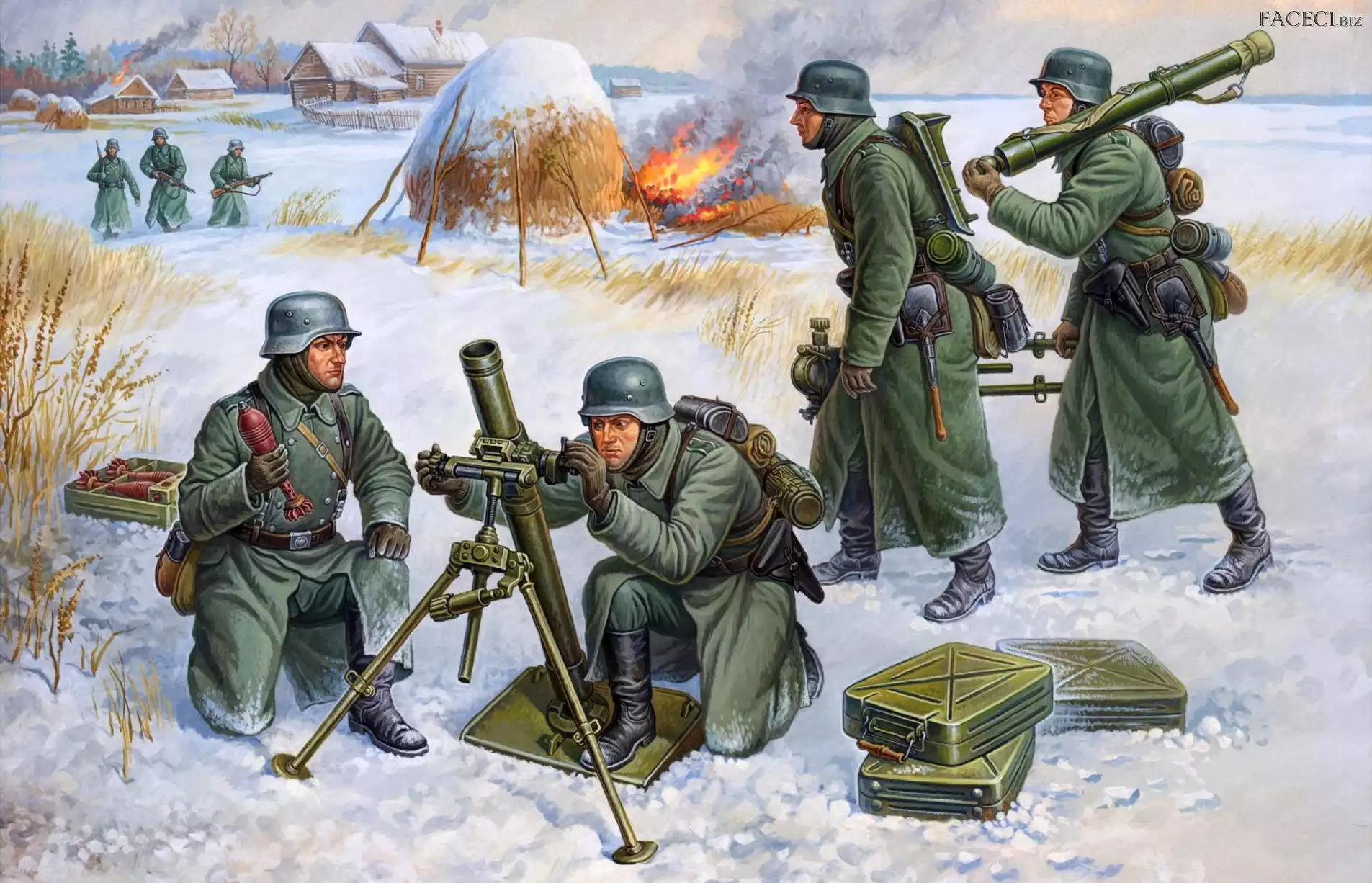 Ogień, Wioska, Broń, Żołnierze, Walka - faceci.biz
